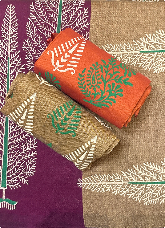 Our sarees are woven, printed, painted, or finished by skilled artisans using time-honoured techniques.