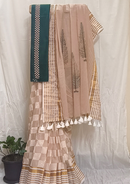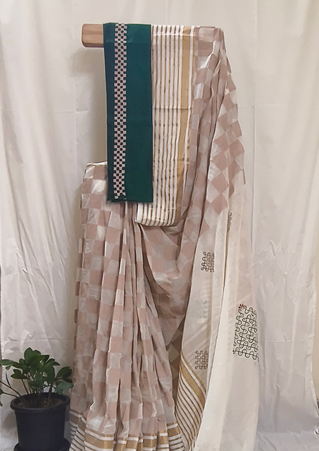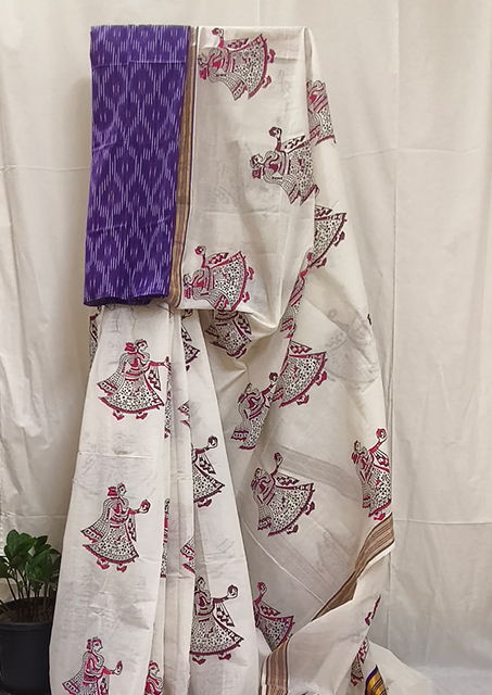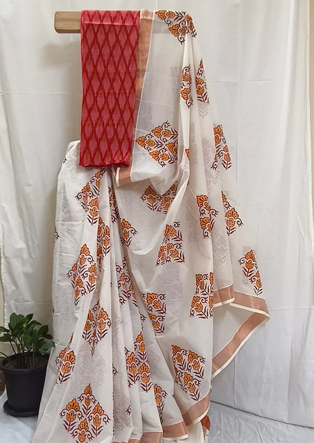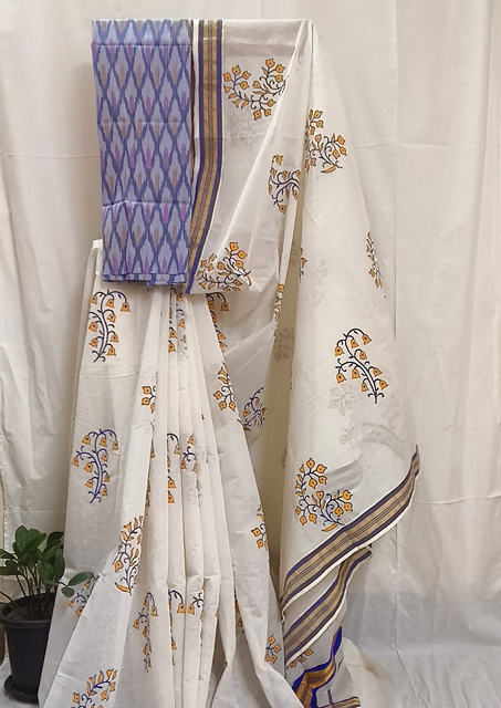 Technique: Hand block printing on saree and blouse